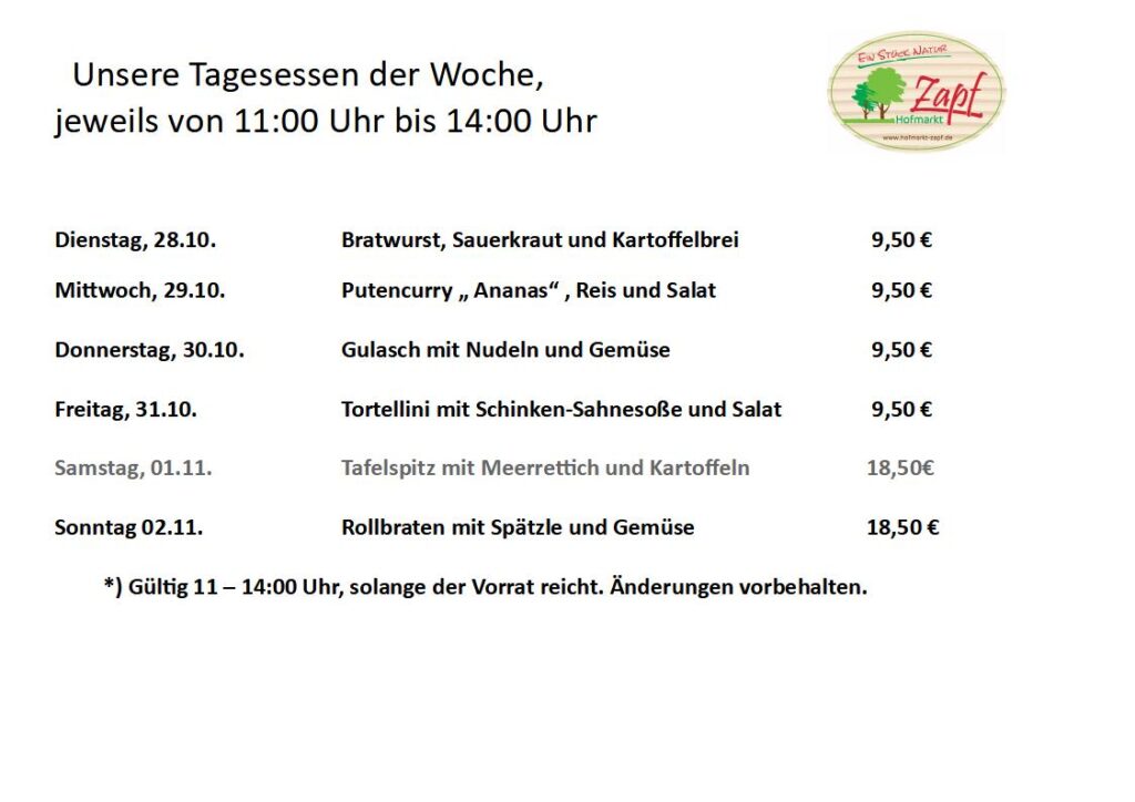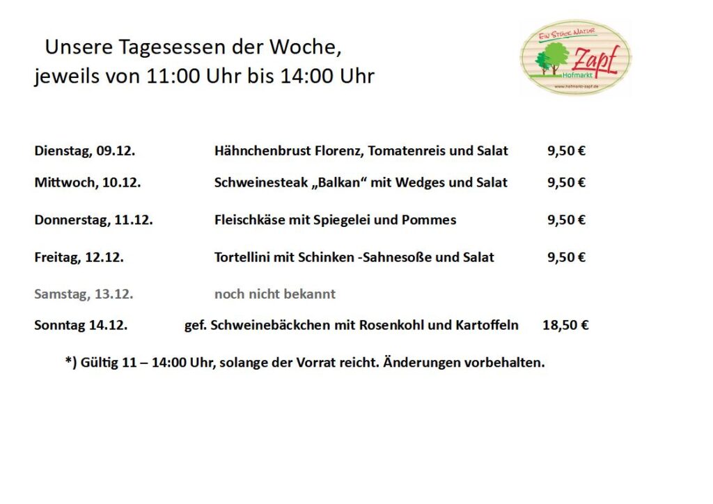 Küchenzeiten: Di-So. in der Zeit von 11-14 Uhr