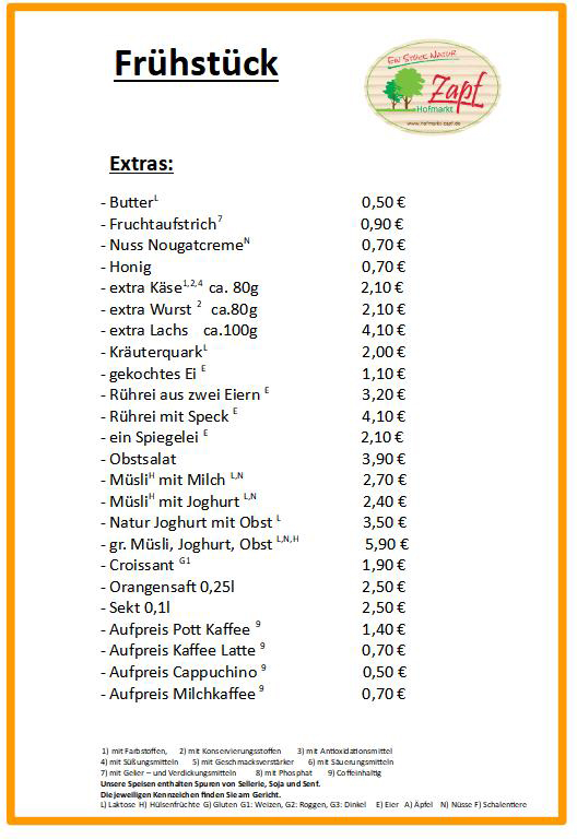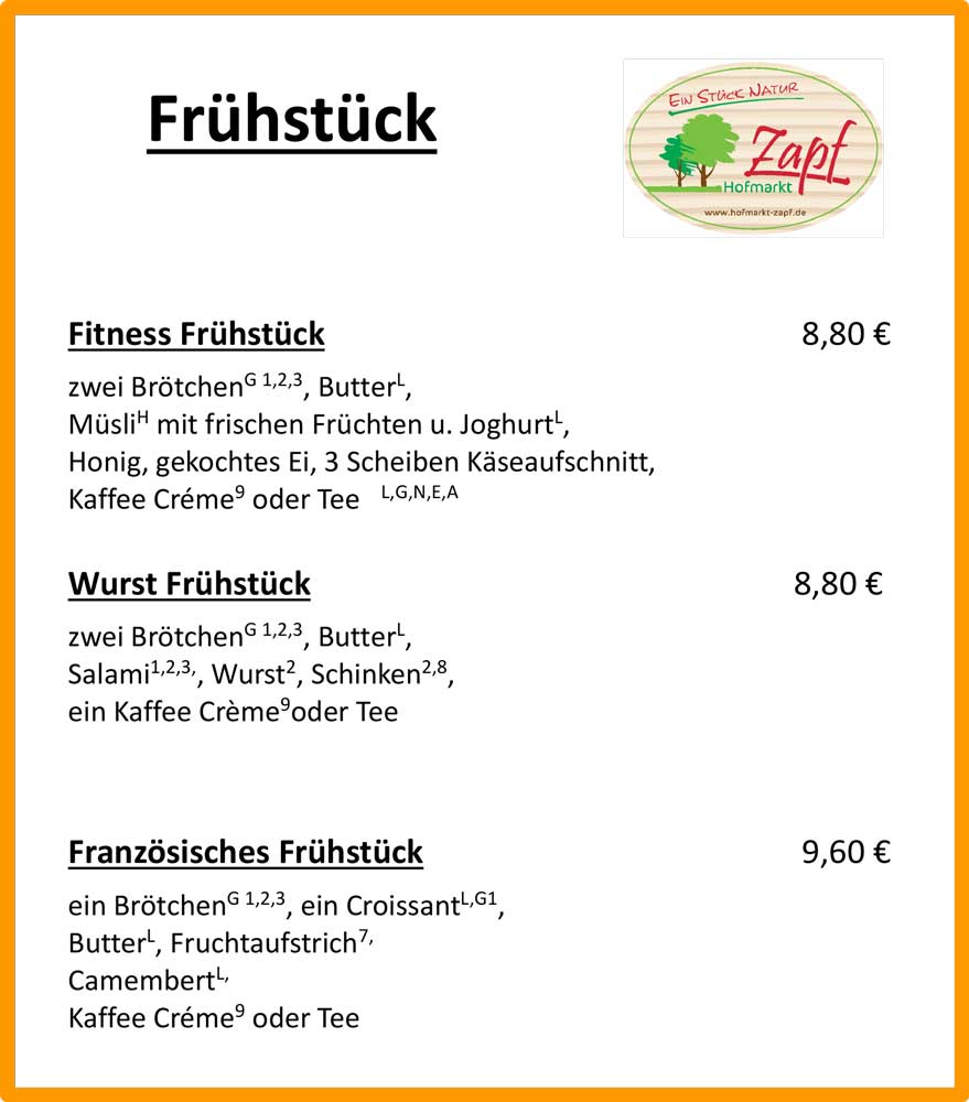 dienstags bis samstags von 9:00 bis 11:00 Uhr FRÜHSTÜCK im Zapf-Café