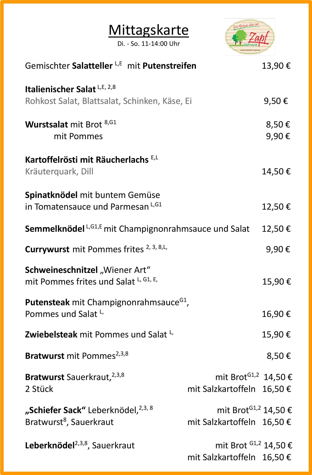 Küchenzeiten: Di-So. in der Zeit von 11-14 Uhr