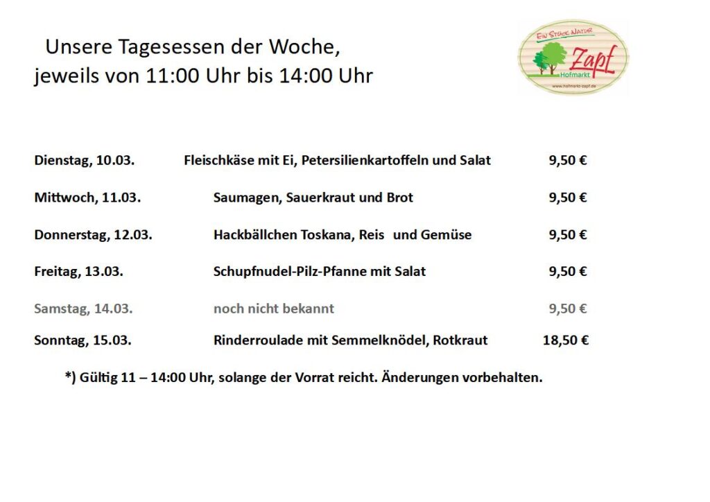 Tagesessen vom 10.03.-15.03.2026